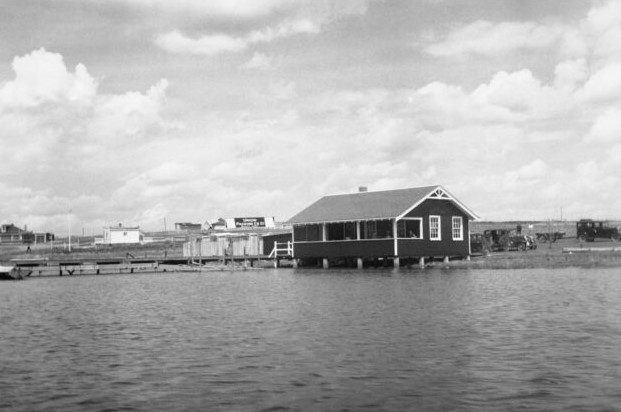 When Highway No. 1 was laid across the lake, the location of the yacht club had to be changed. As a result, in 1934, they built a new building further south, on the opposite side of the road and bridge, on the leased property of the Canadian Pacific Railroad. Next to the new clubhouse, they constructed a shed for boats. The CYC also had railroad tracks to make it easier to haul boats to the shed.
