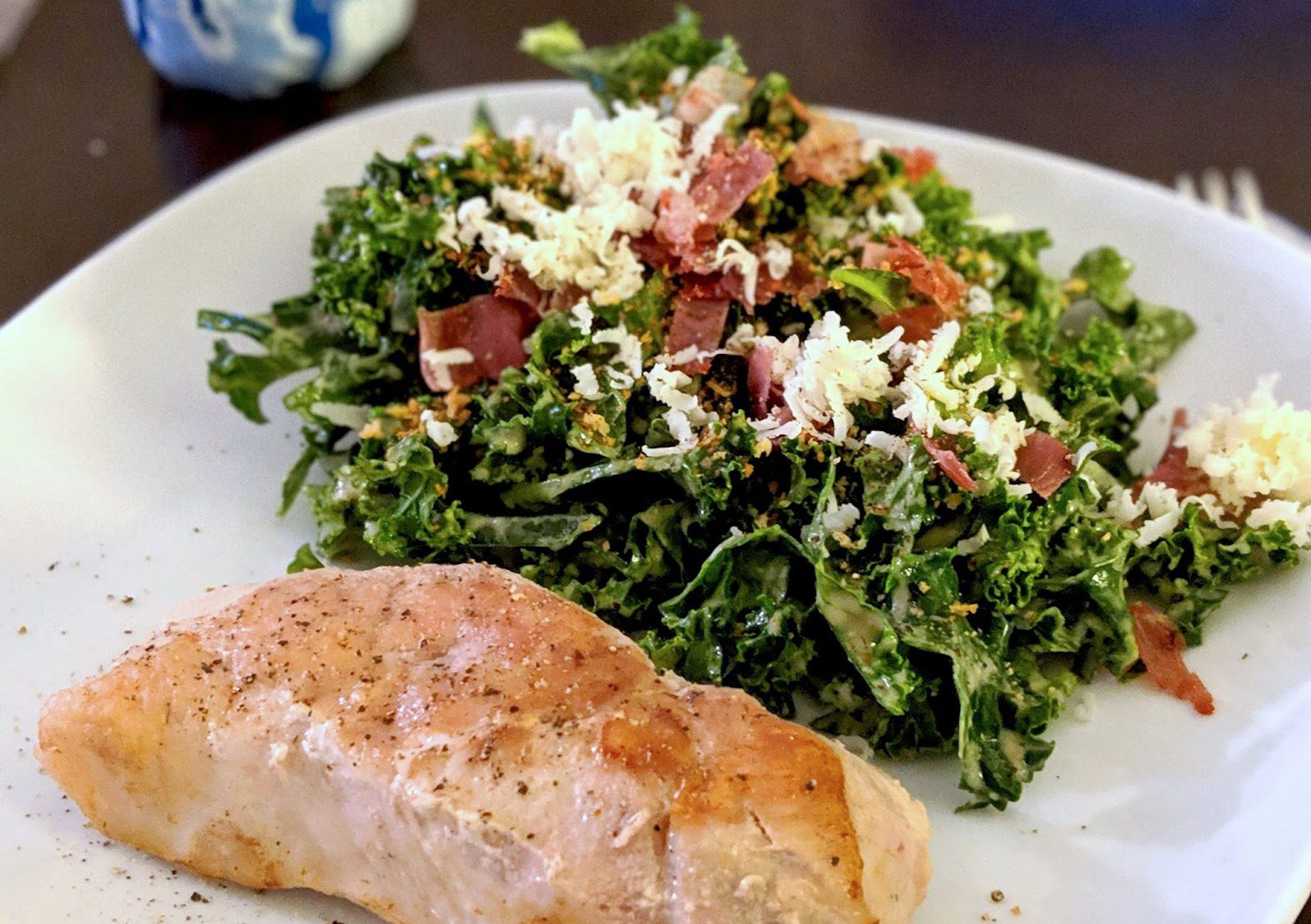 Це чи не найбільш обговорюваний салат у Калгарі, до якого додають органічну капусту кейл, вирощену в цій місцевості; круто зварені яйця; підсмажені сухарі-панко; хрустке прошуто (італійська шинка) та сир пекоріно романо.