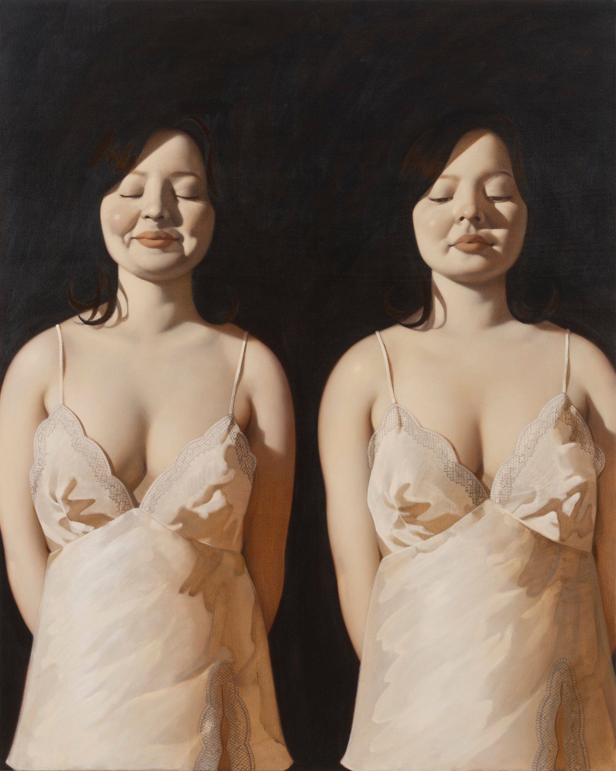 На деяких роботах зображені подвоєні фігури, що викликає відчуття дивацтва, оскільки половина пари гримасує, а інша посміхається. Ці двійники, представлені у вільному одязі, нагадують про особливості жіночності та жіночого тіла. Художниця залишила глядачу право вирішити самостійно, чи зображені близнюки, чи то одна й та сама особа, але в різний момент часу.